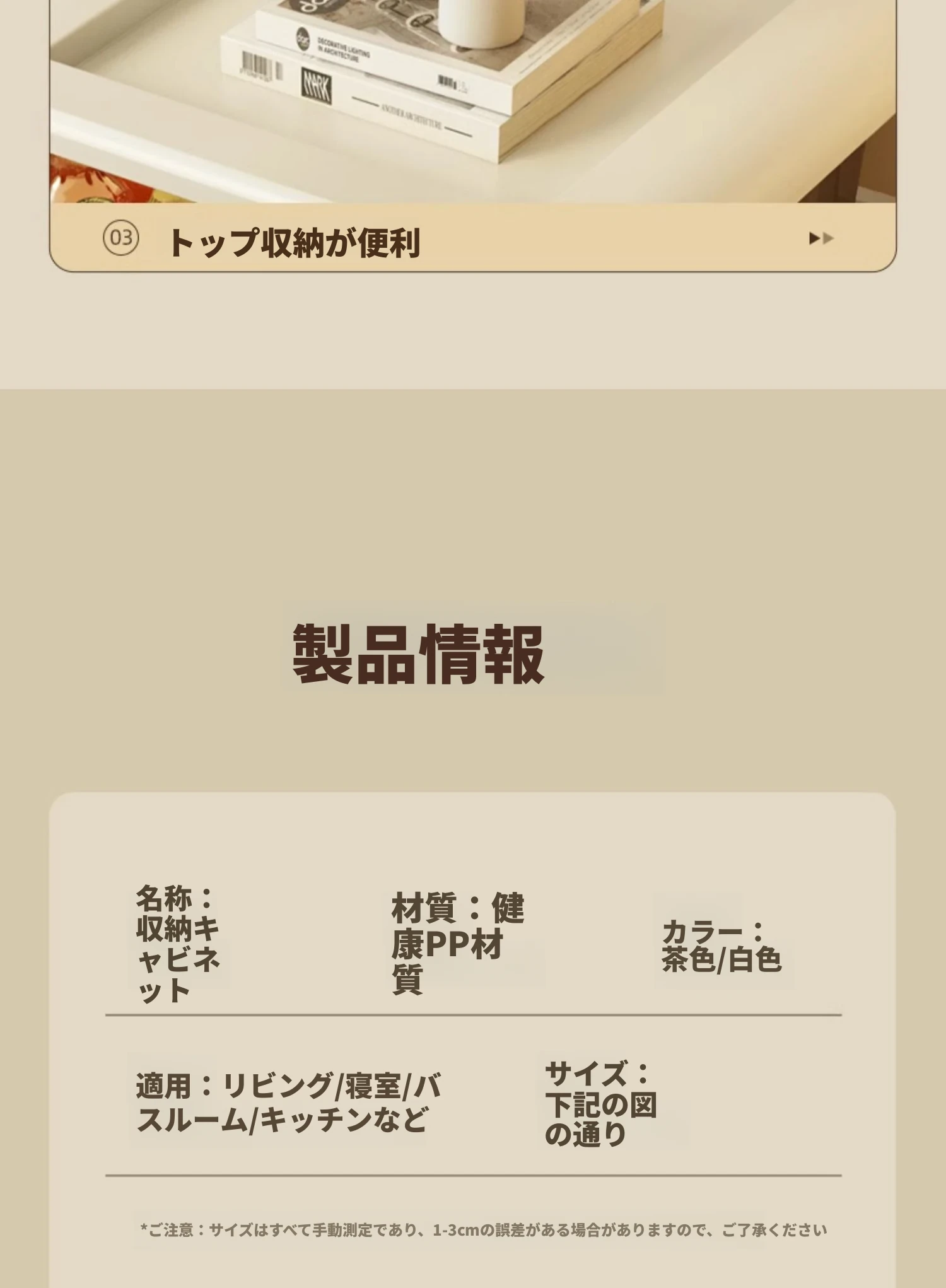 化粧品収納キャビネット - 白 大サイズ - 三層【360°万向きキャスター】