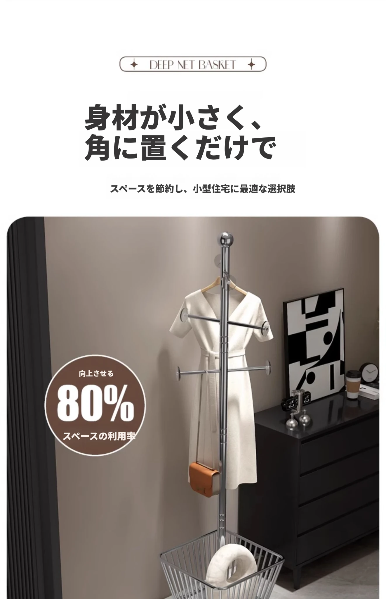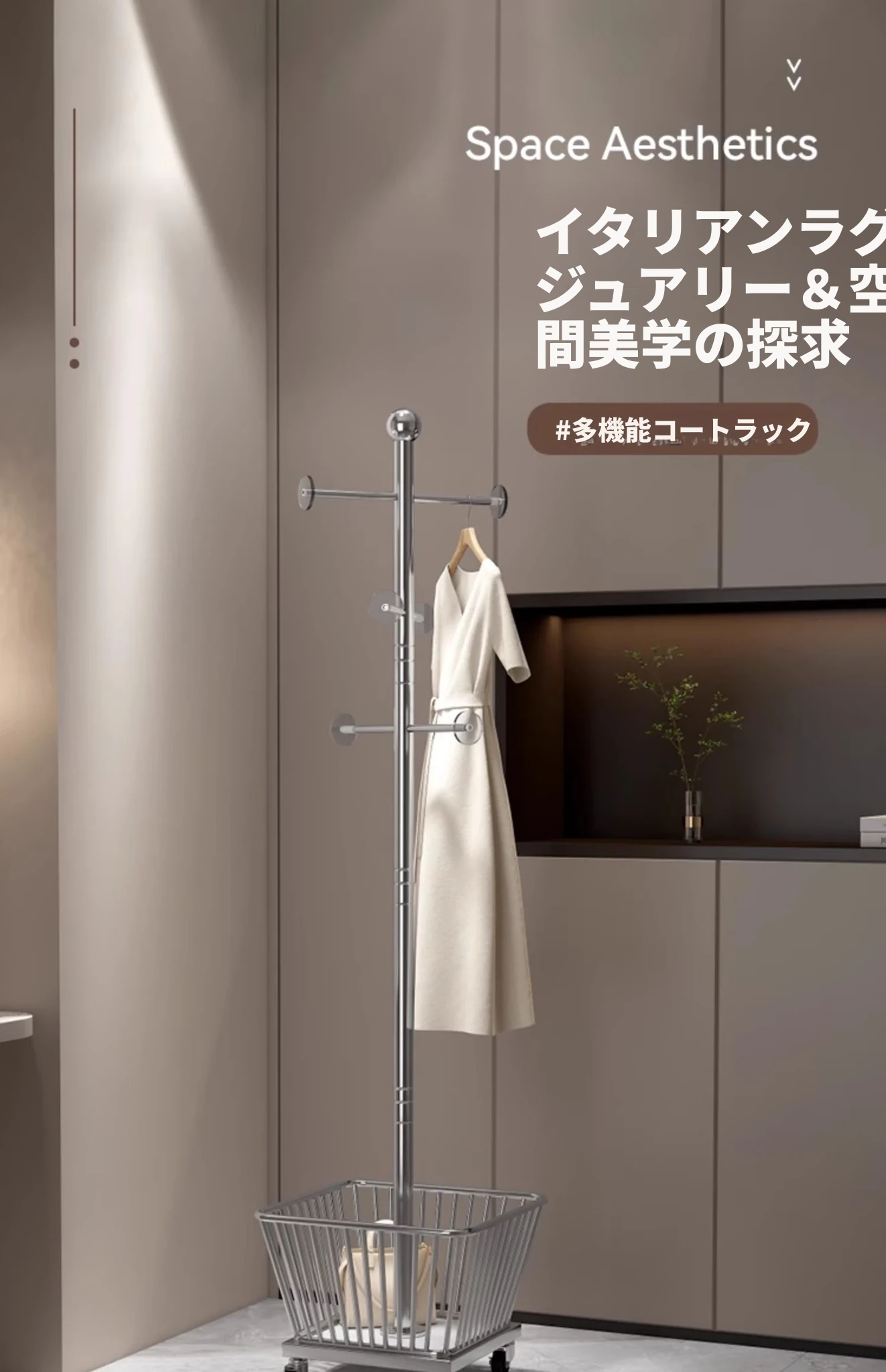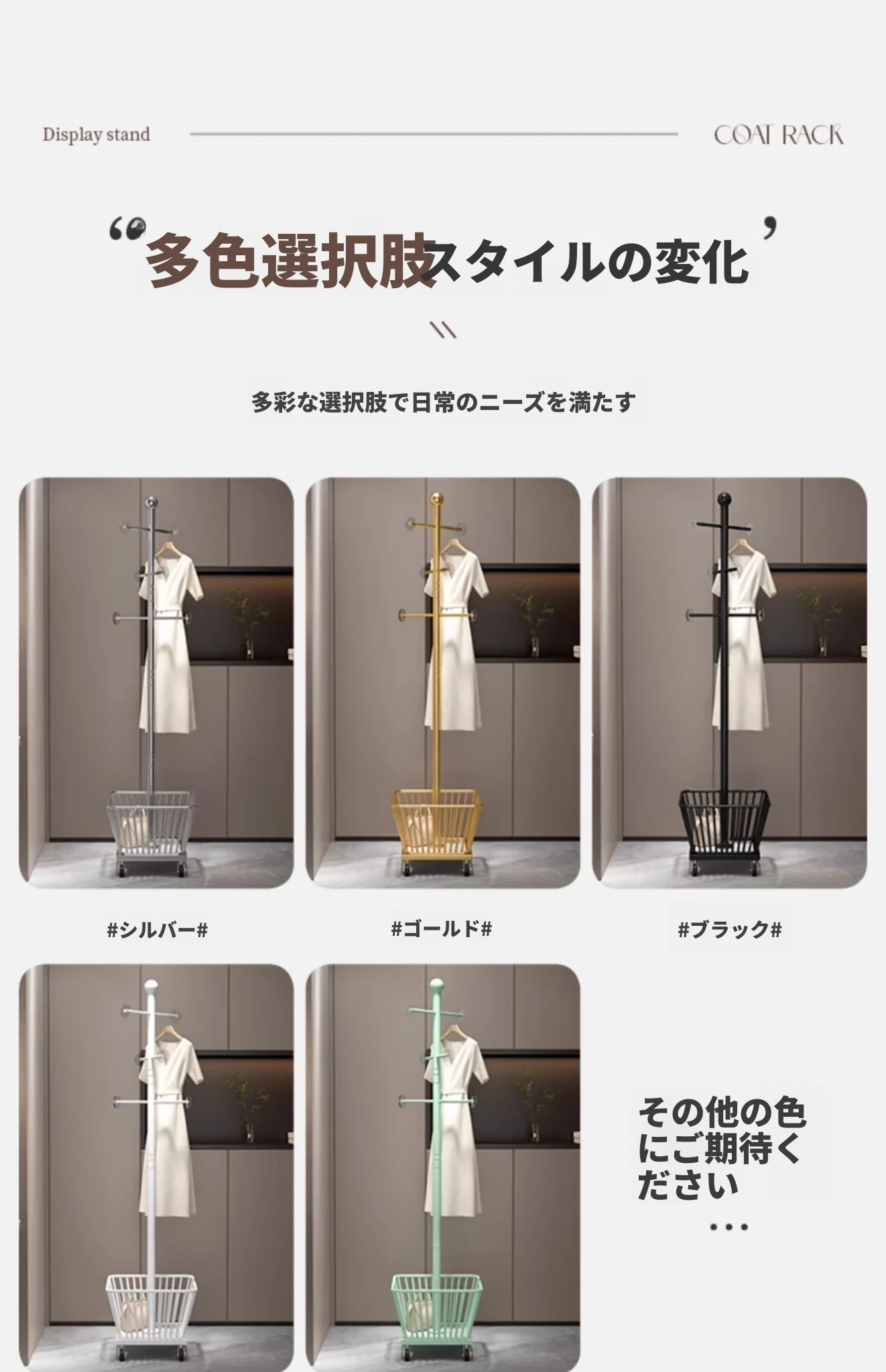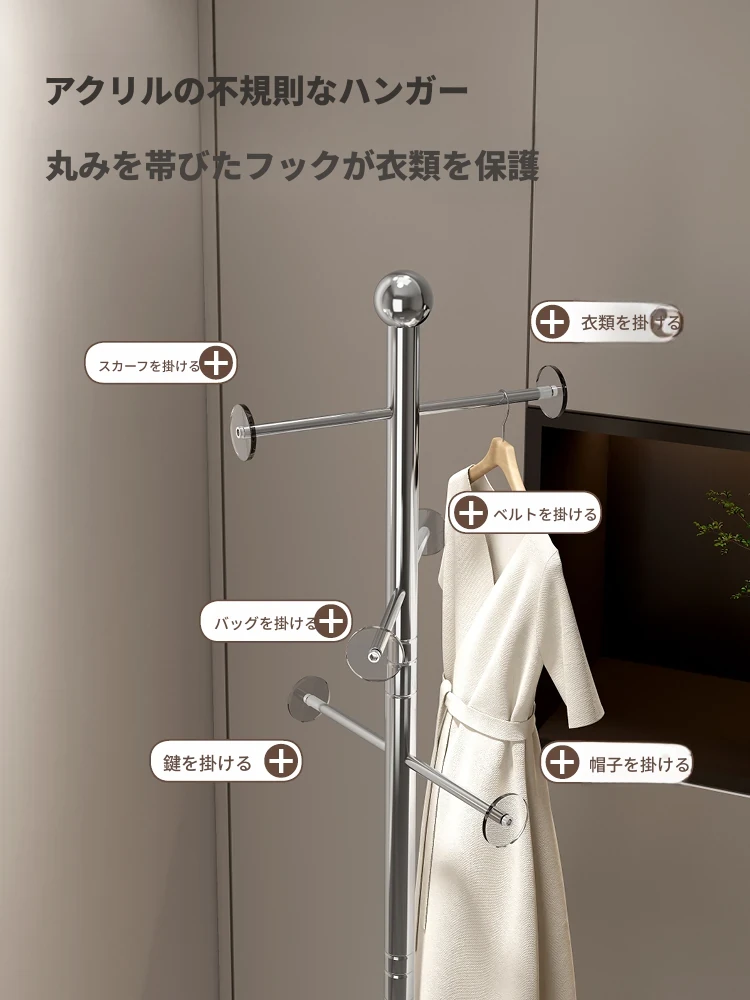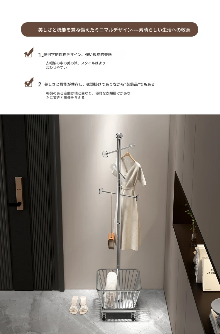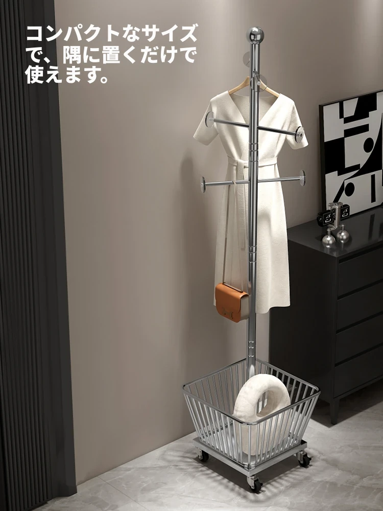 ベッドサイドにぴったり!シンプルでスタイリッシュな衣類ハンガー・コートスタンド。落地式で安定感抜群、バッグや服を簡単に掛けられます。使わない時はコンパクトに収納可能!お部屋をスッキリ整えて、毎日を快適に!