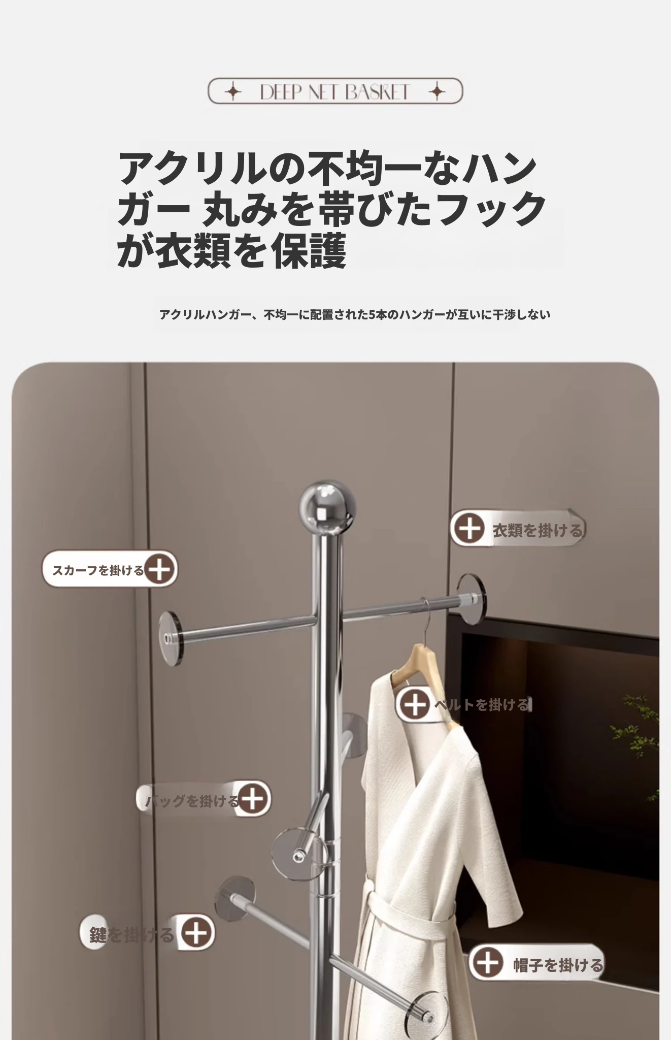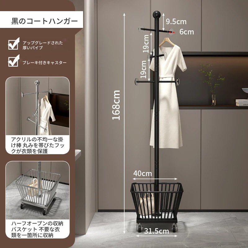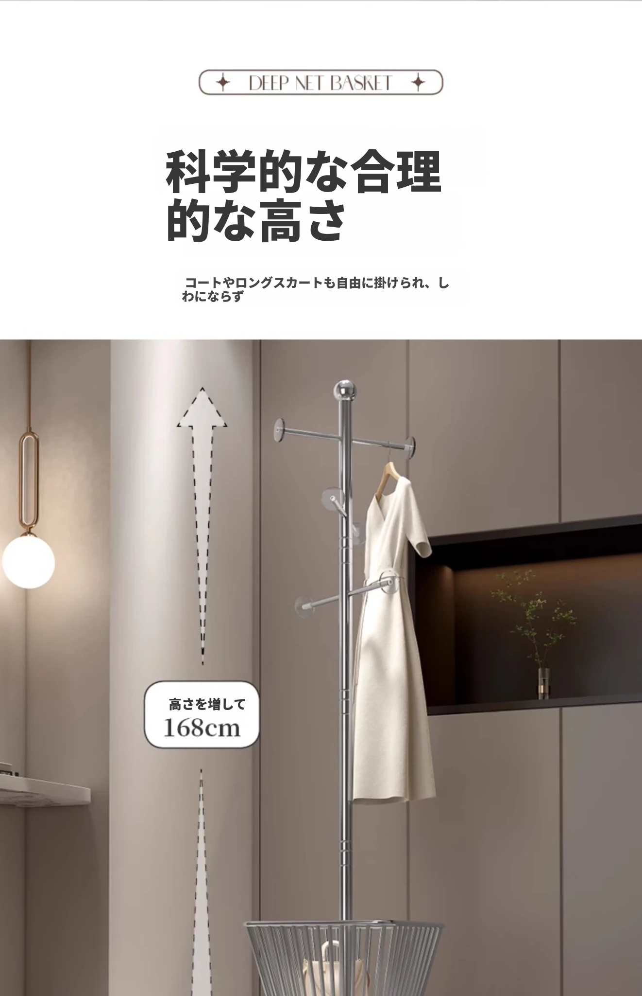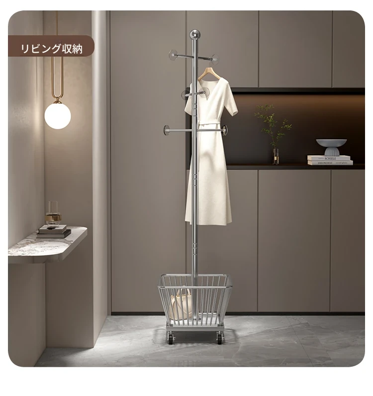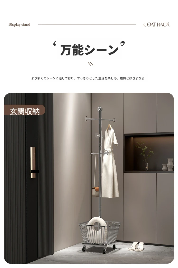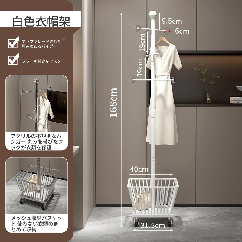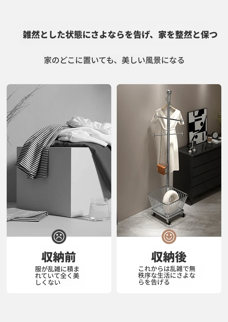 ベッドサイドにぴったり!シンプルでスタイリッシュな衣類ハンガー・コートスタンド。落地式で安定感抜群、バッグや服を簡単に掛けられます。使わない時はコンパクトに収納可能!お部屋をスッキリ整えて、毎日を快適に!
