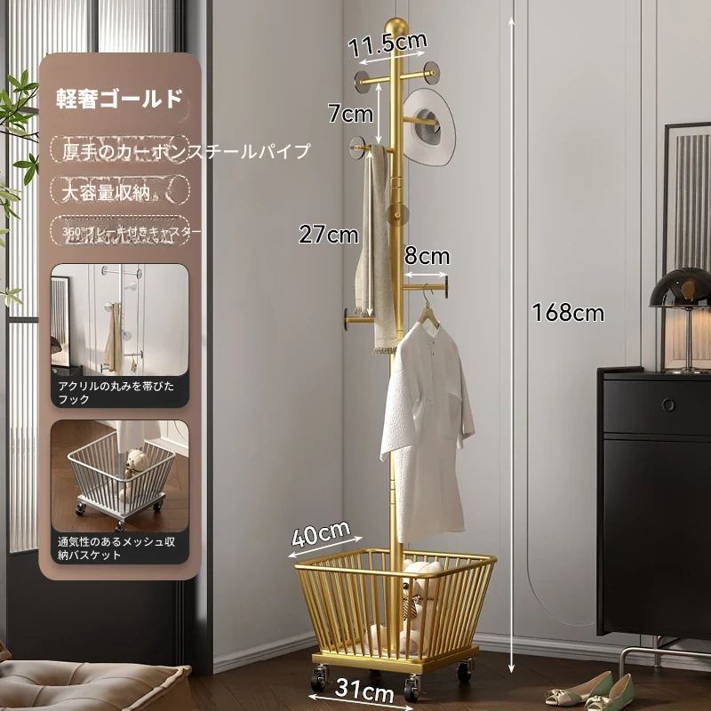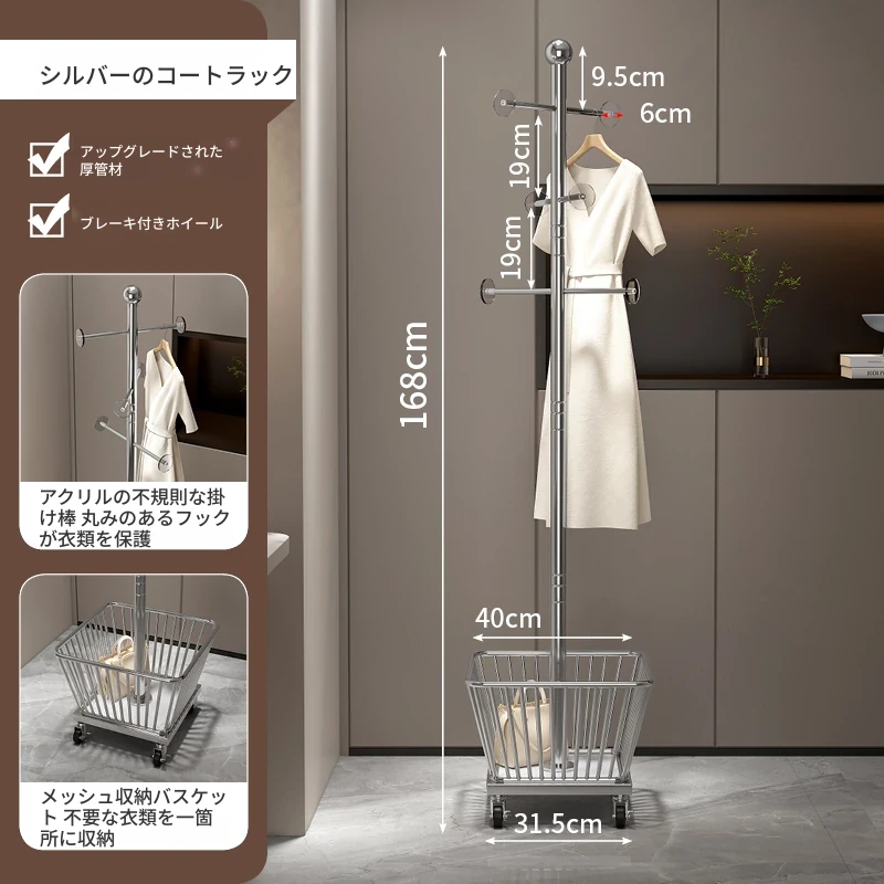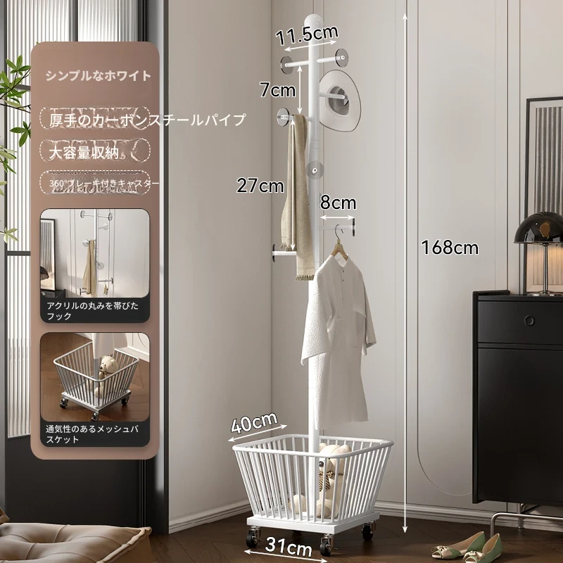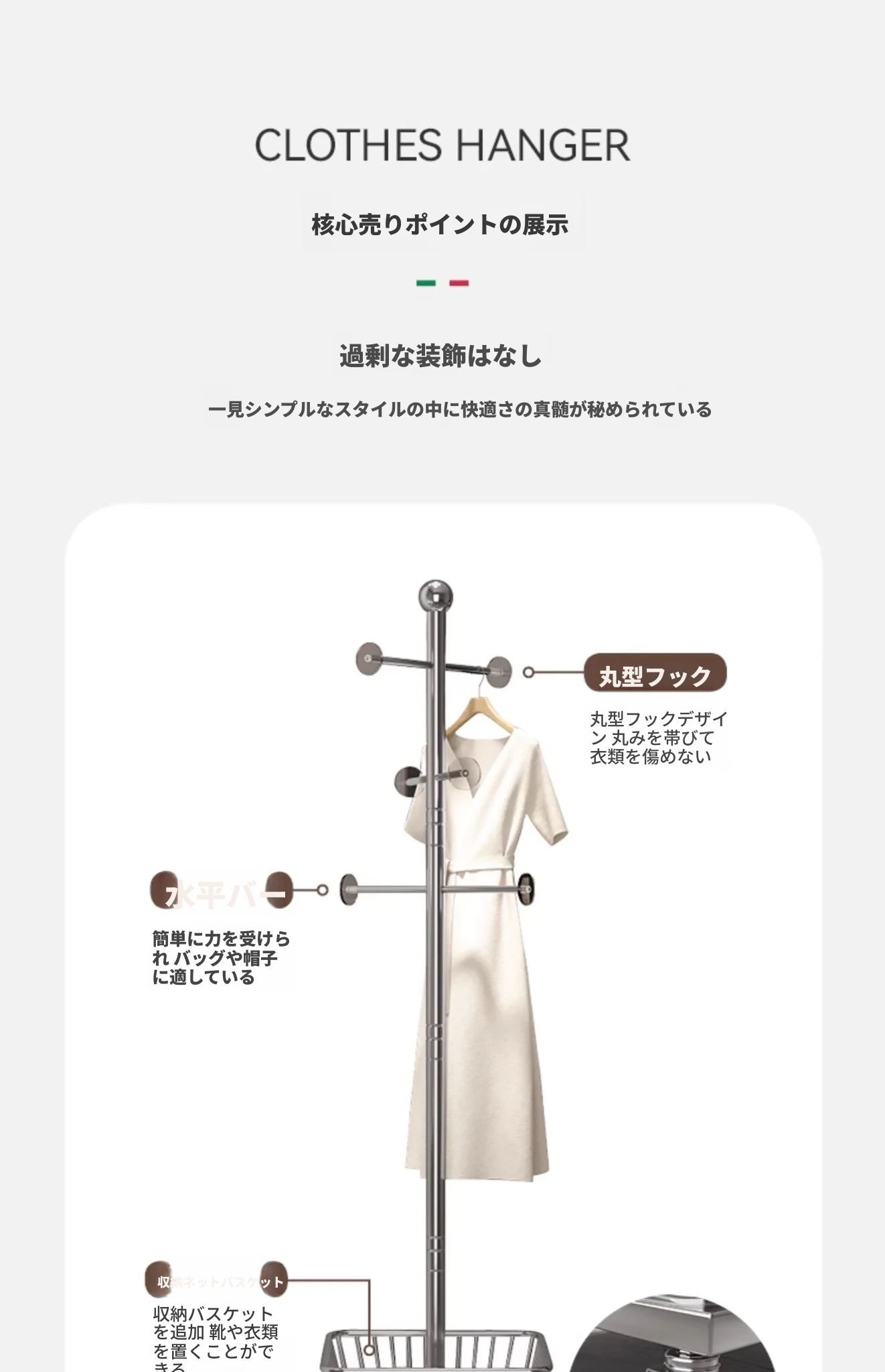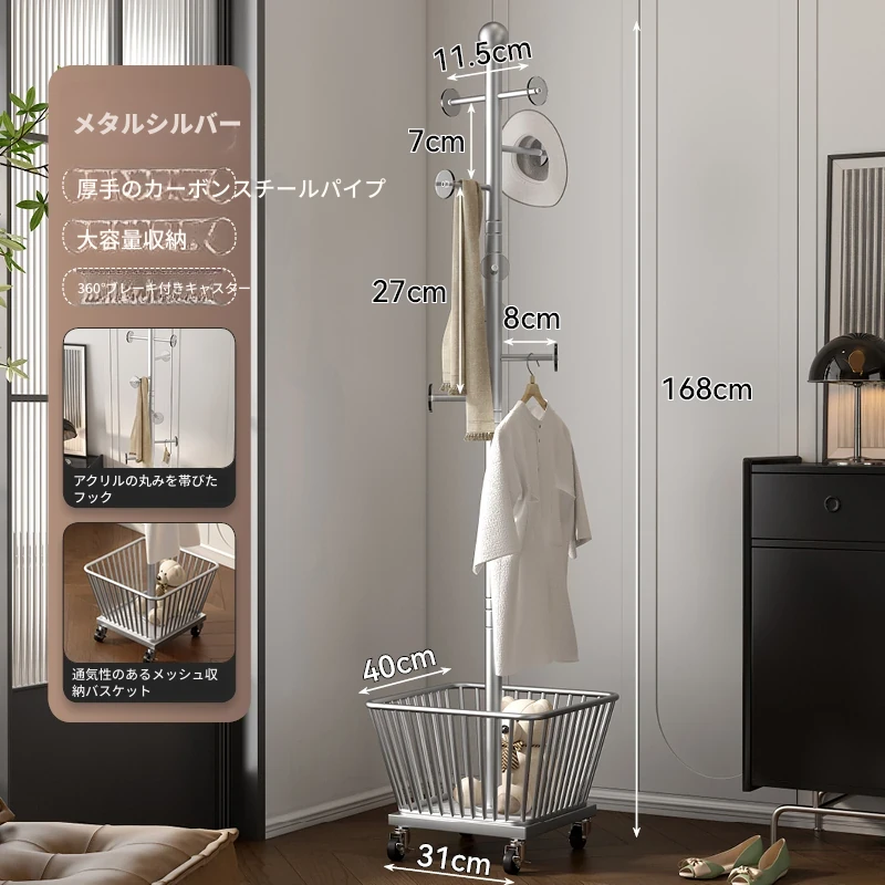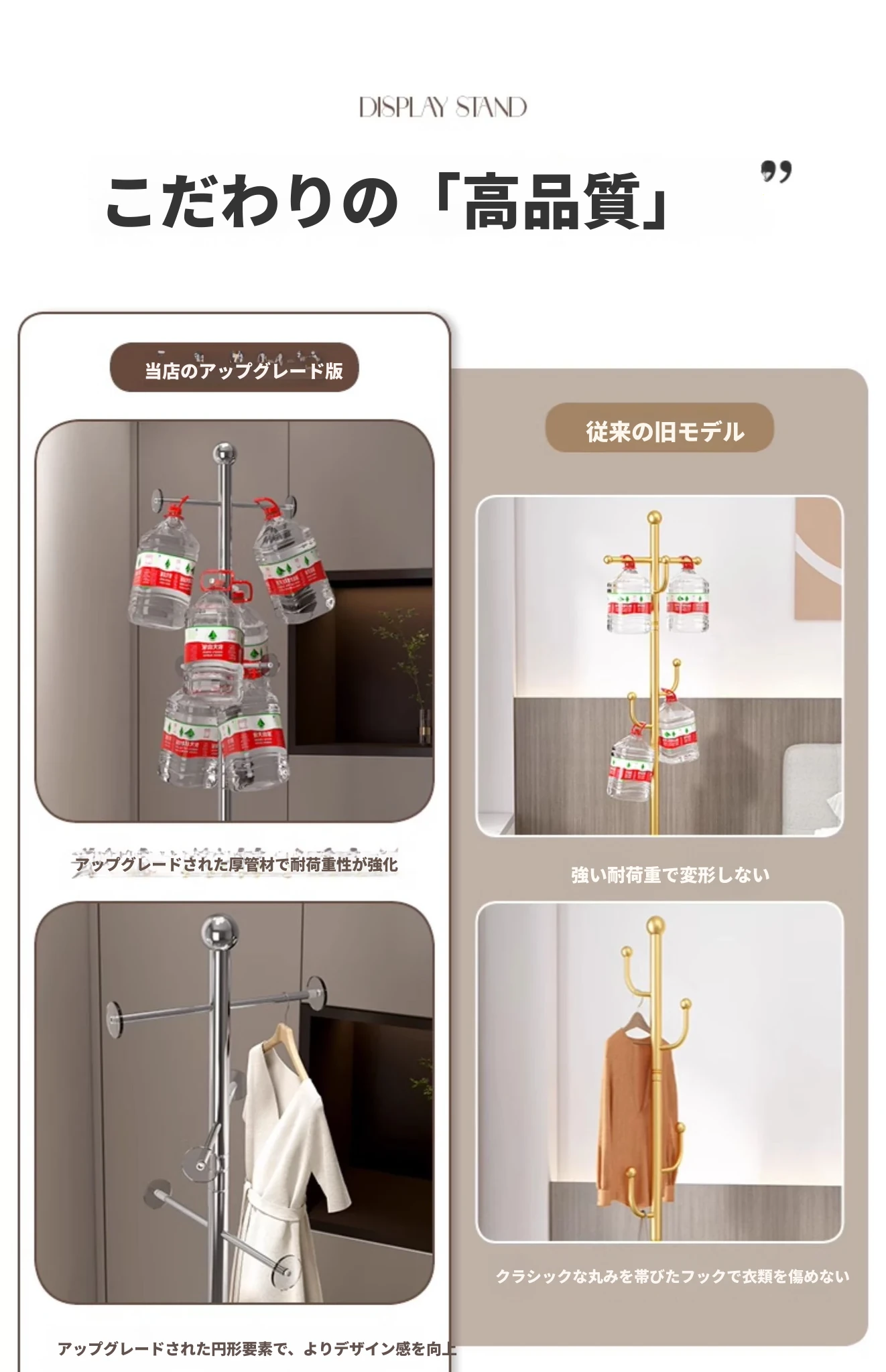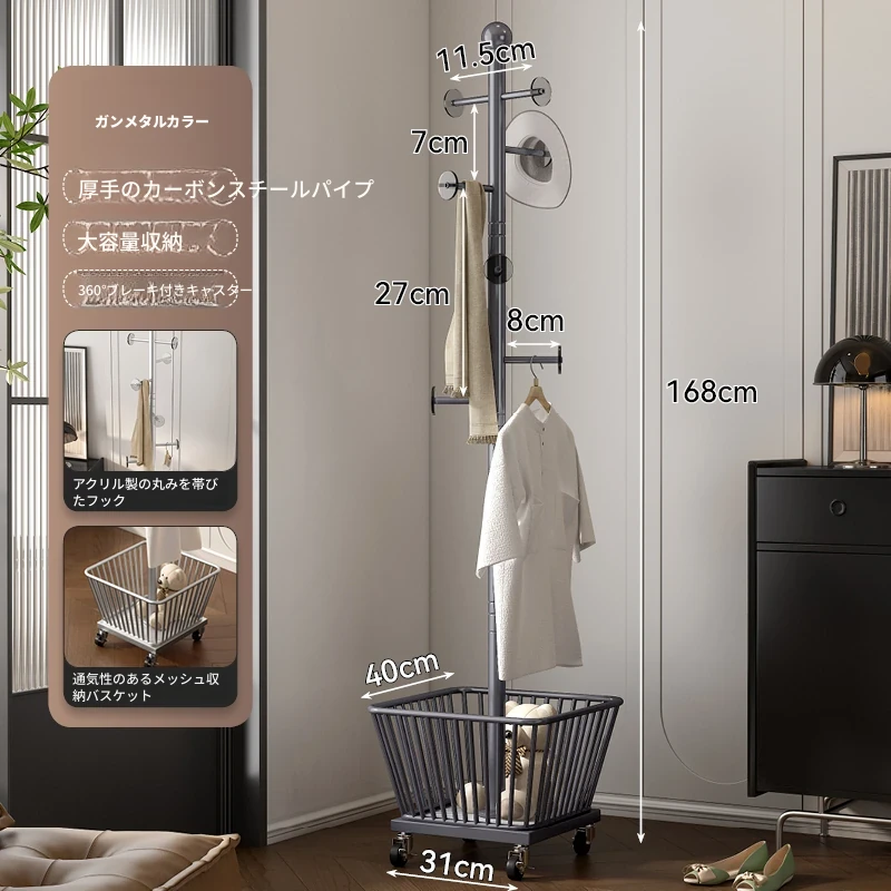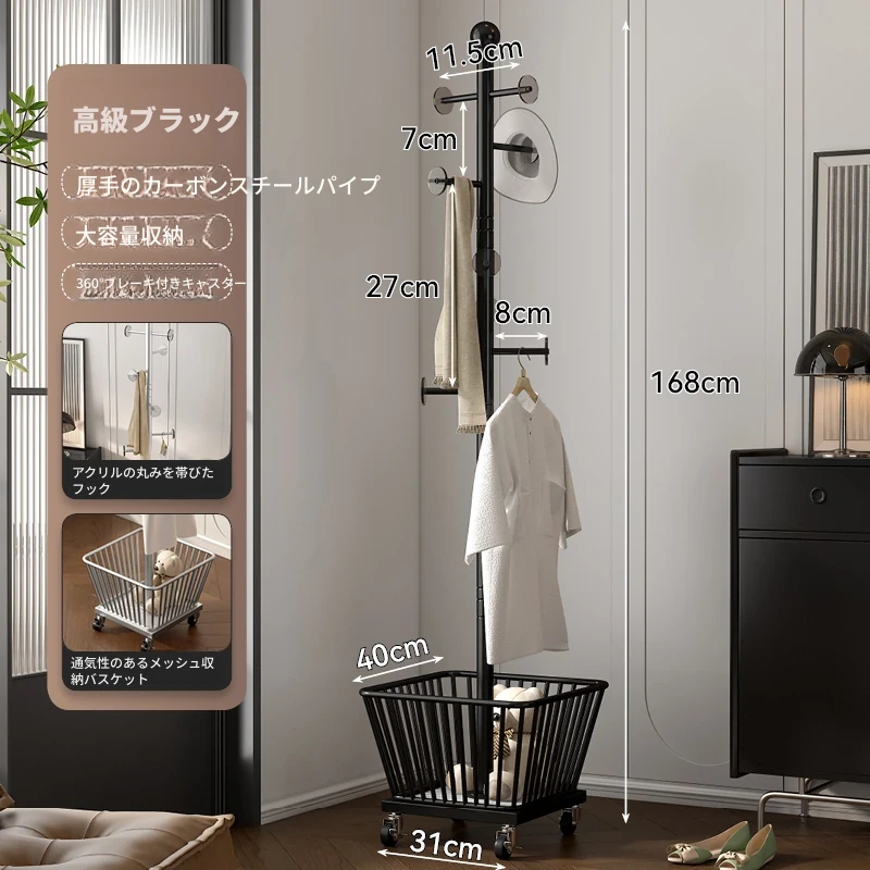 ベッドサイドにぴったり!シンプルでスタイリッシュな衣類ハンガー・コートスタンド。落地式で安定感抜群、バッグや服を簡単に掛けられます。使わない時はコンパクトに収納可能!お部屋をスッキリ整えて、毎日を快適に!