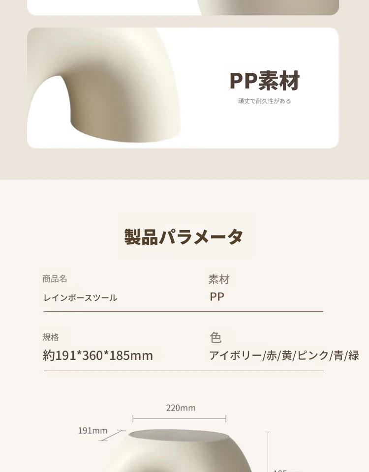 厚手タイプ—クリームホワイト(座高18cm)重ねて収納しても場所を取らない