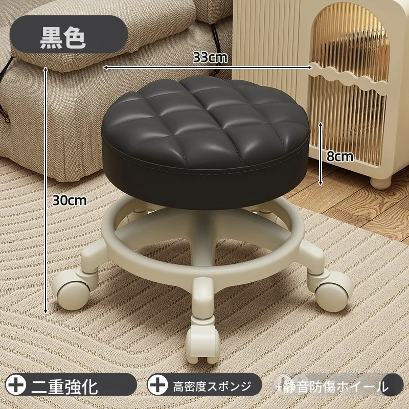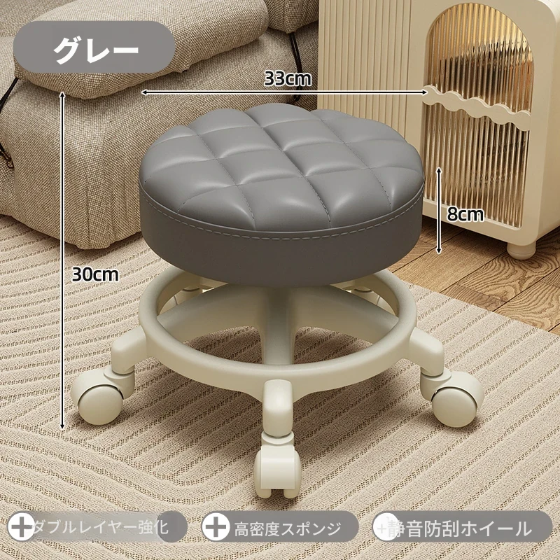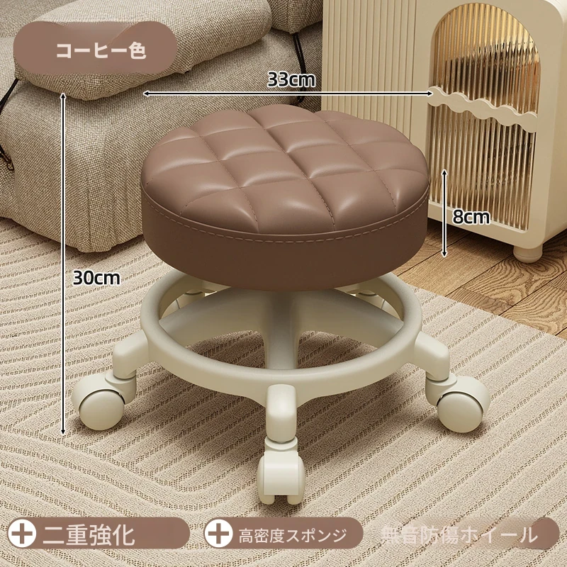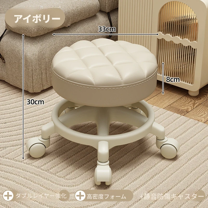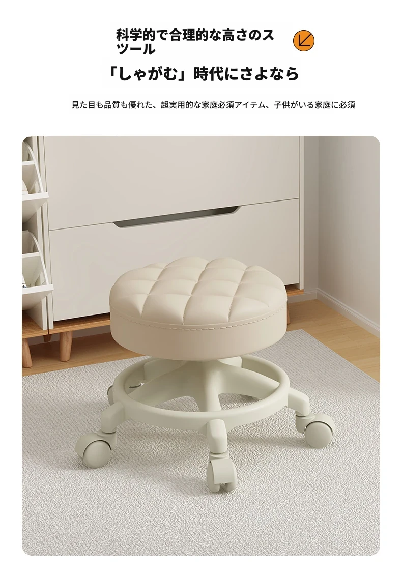 家庭用のロー stool - キャスター付きで移動もラクラク!リビングや玄関にぴったりな小さな丸椅子。お子様の遊びにも最適な便利アイテム!テーブルや靴を履く際にも大活躍!