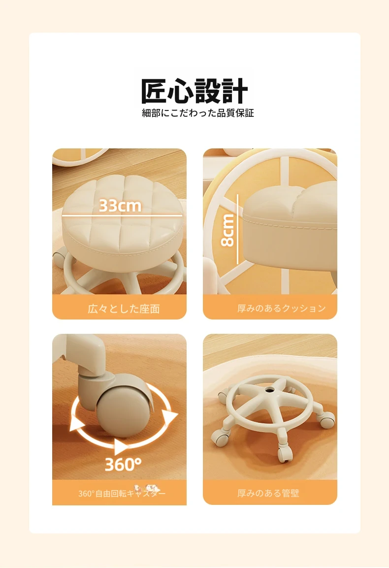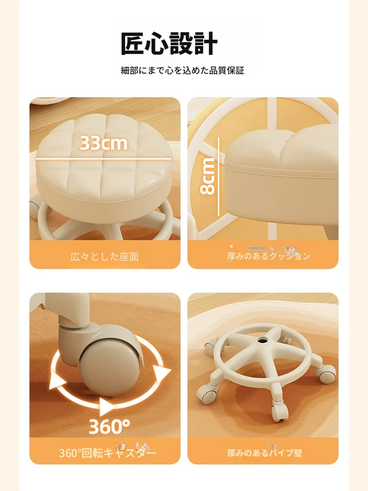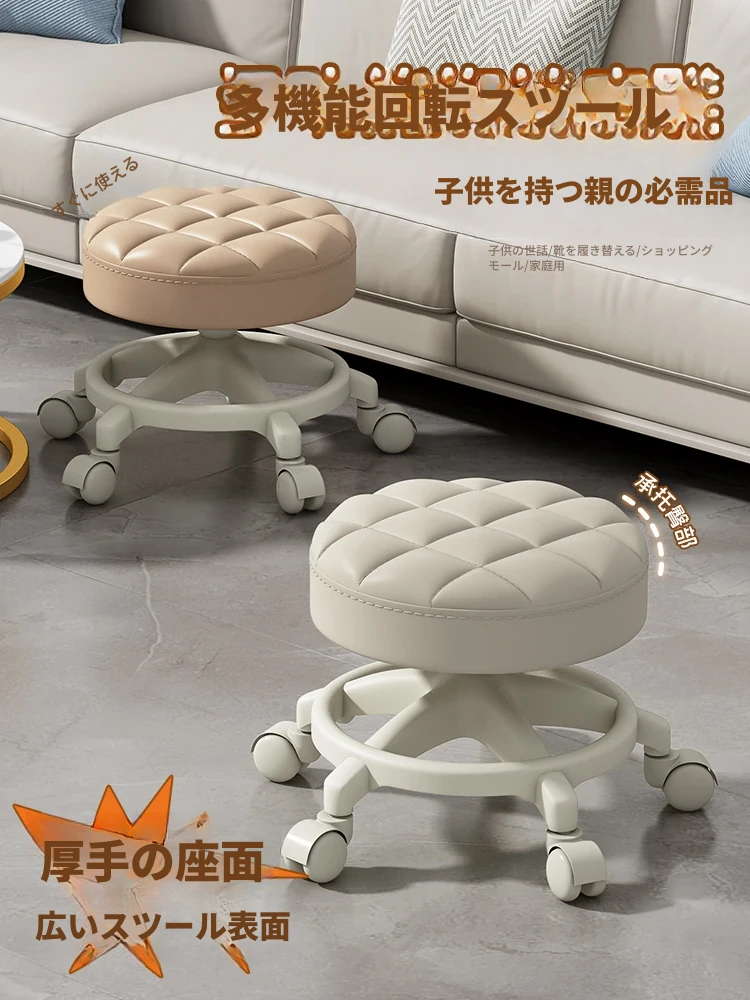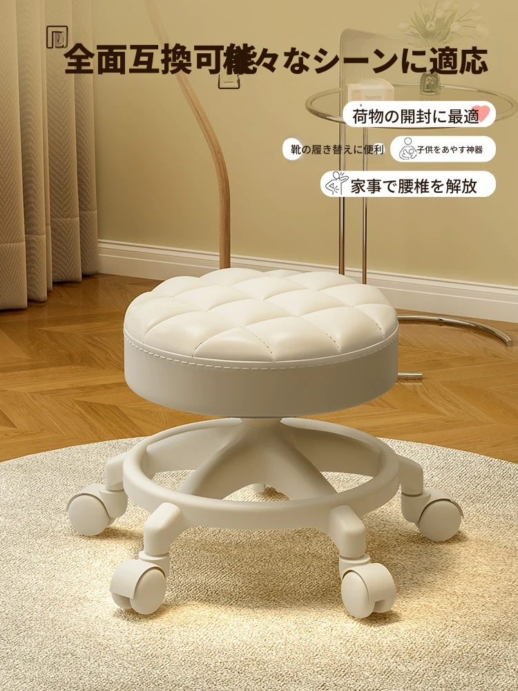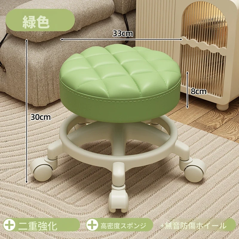 家庭用のロー stool - キャスター付きで移動もラクラク!リビングや玄関にぴったりな小さな丸椅子。お子様の遊びにも最適な便利アイテム!テーブルや靴を履く際にも大活躍!