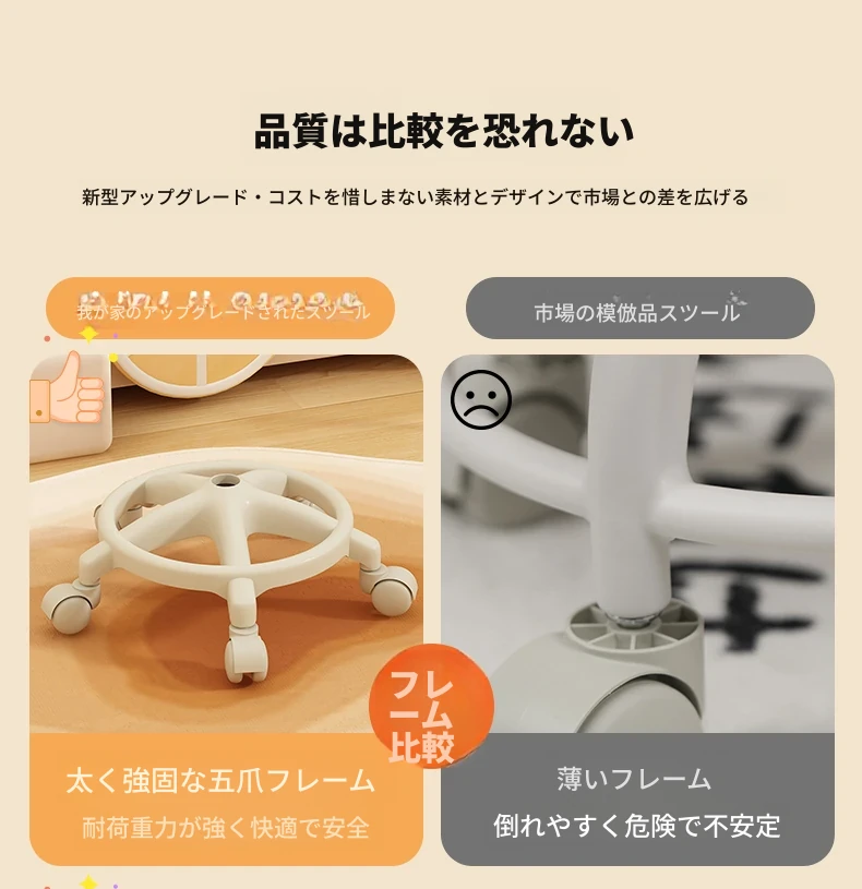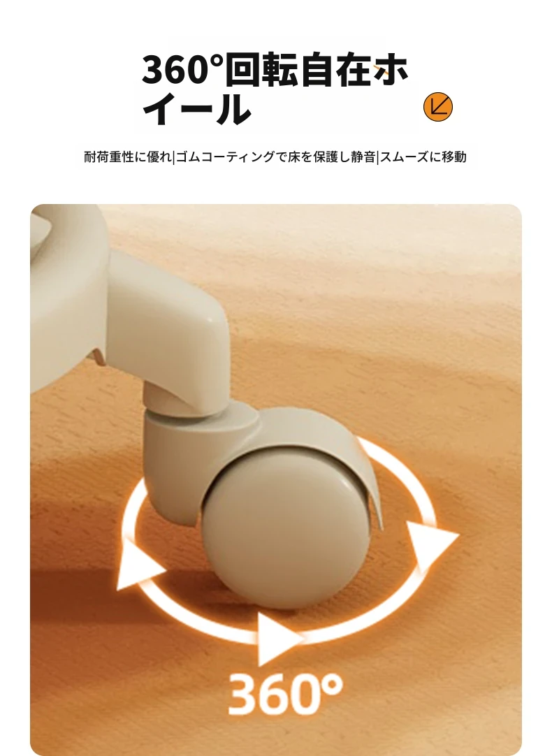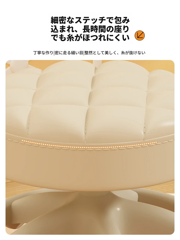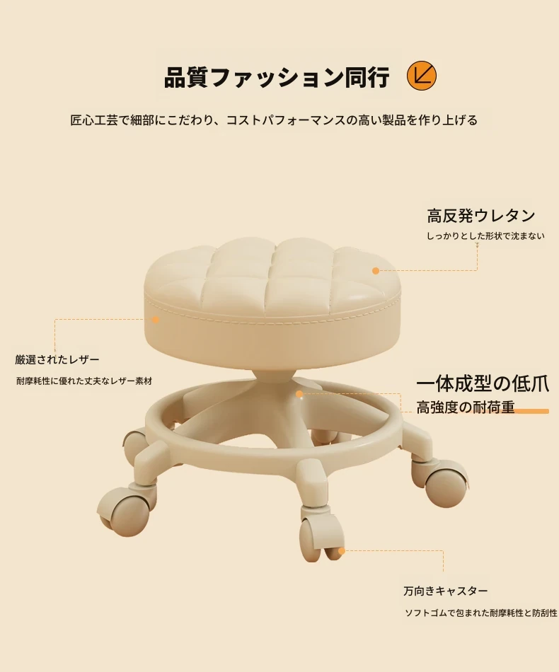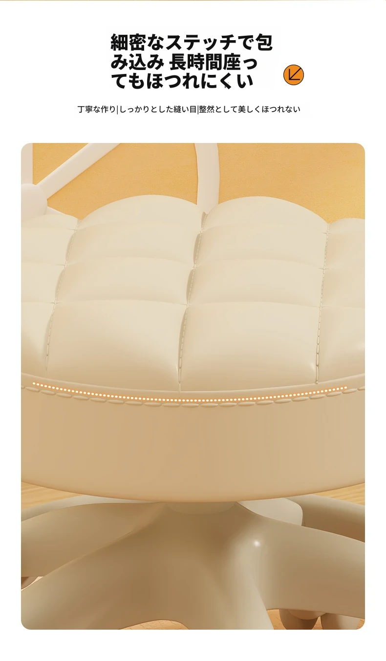 アイボリー - 厚手のクッション座面 + 幅広の座面 + シルキーな五爪キャスター