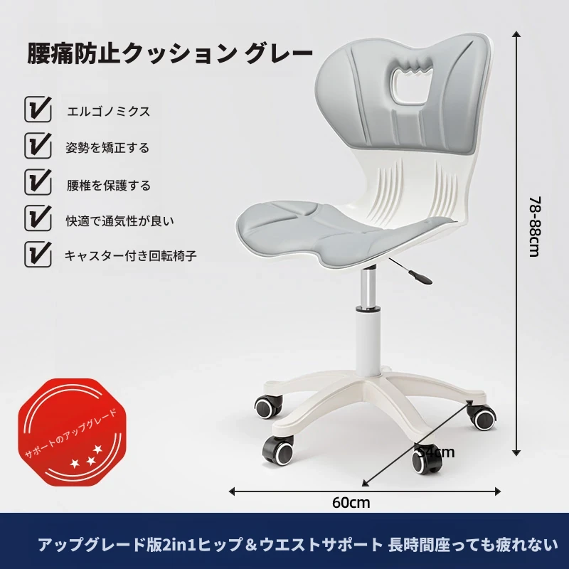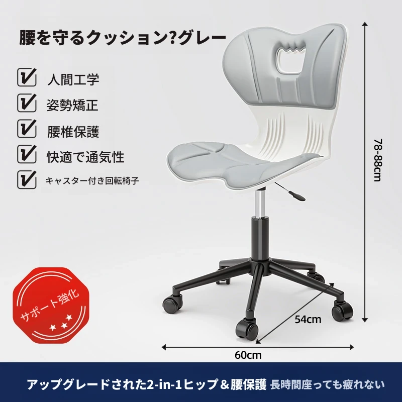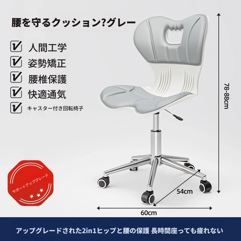 人気おすすめ⭐ステンレスシルバーのフレーム✨グレー✨快適な腰サポート-効率的な脊椎圧力緩和