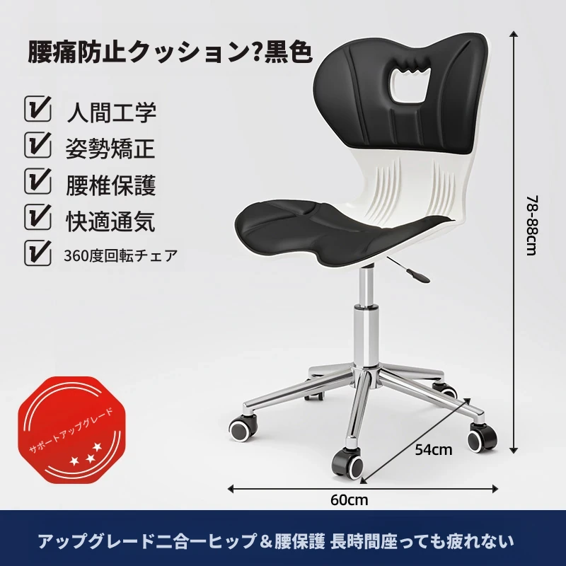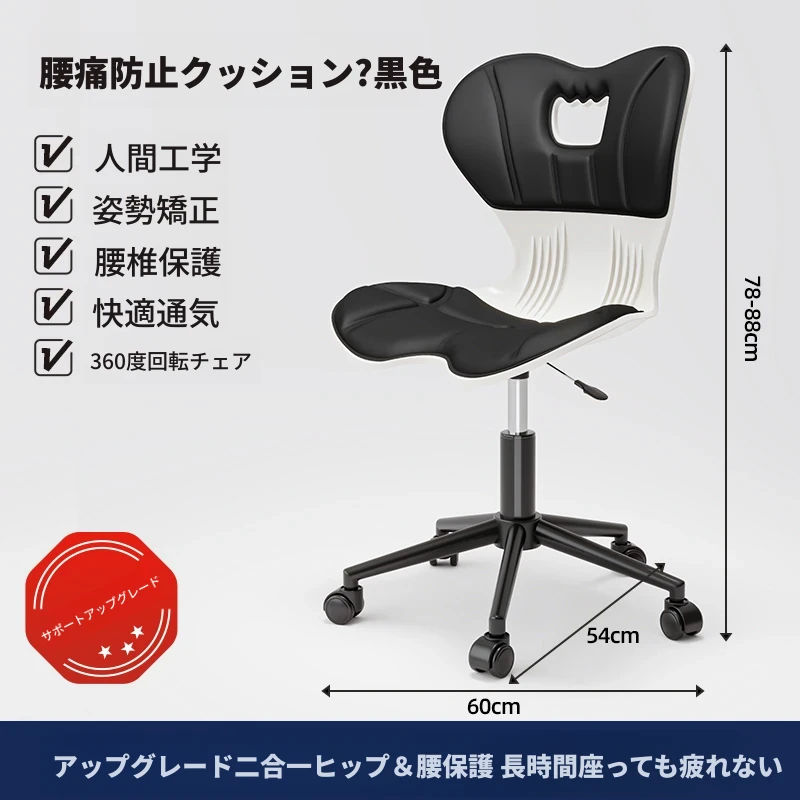ステンレスブラックのフレーム✨ブラック✨快適な腰サポート-効率的な脊椎圧力緩和
