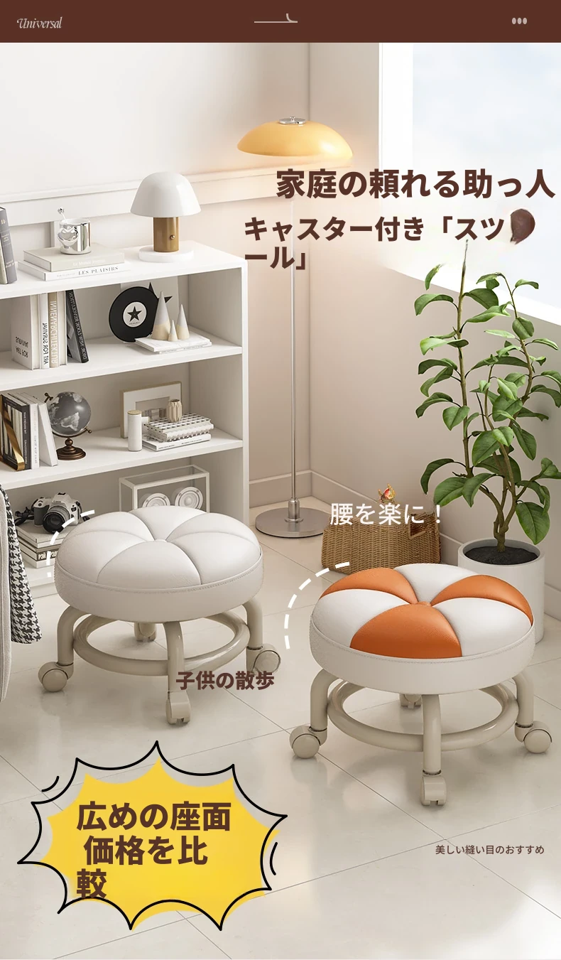 キャスター付き小椅子|リビングやソファに最適!赤ちゃんの歩行をサポートするベビースツール|便利な育児アイテム!